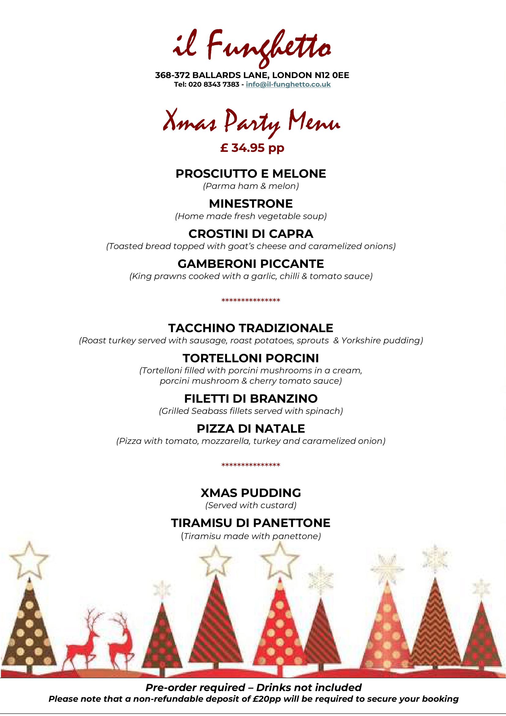 Pre-order required – drinks not included. A non-refundable deposit of £20 per person will be required to secure your booking.